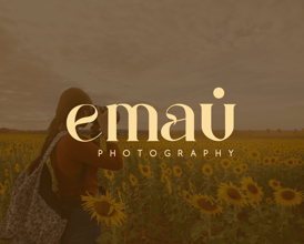 الشعار مستوحى من زهرة تباع الشمس حيث أن حرف النون من إيمان يمثــل بتلة الزهرة فكما تتبع زهرة دوار الشمس الشمـــس بحثـاً عن الضـــوء تتبع ايمــــان فوتوغرافي ، اضواء الكاميرا التي توثق اللحظات الجميلة و التفاصيل الدقيقة تمتزج الاضواء بالاحاسيس لتصبح حكاية خالدة في اطار